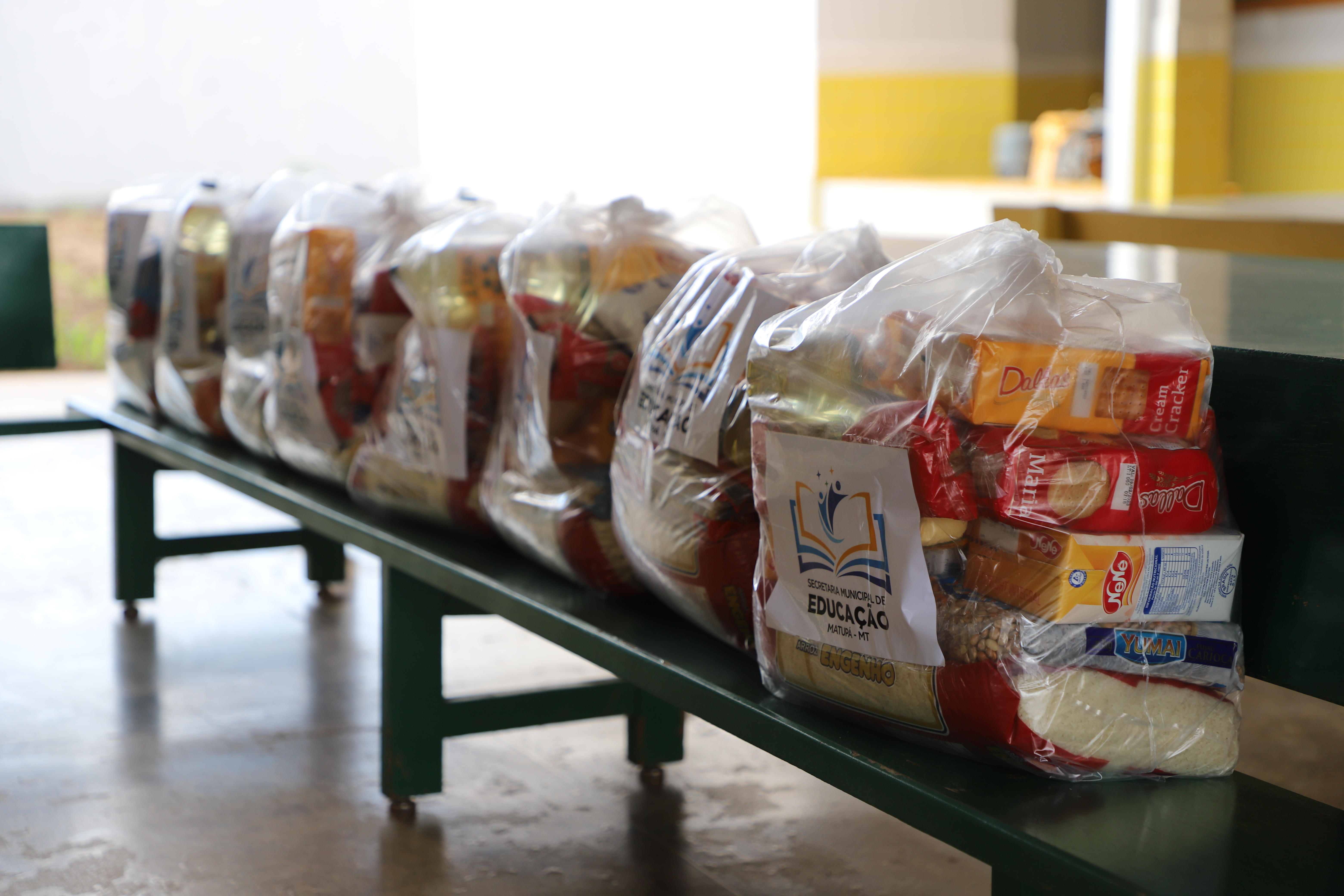 São cestas que são disponibilizadas aos alunos cadastrados no Bolsa Família, kits de alimentação que vão integrar a nutrição do aluno em sua residência.