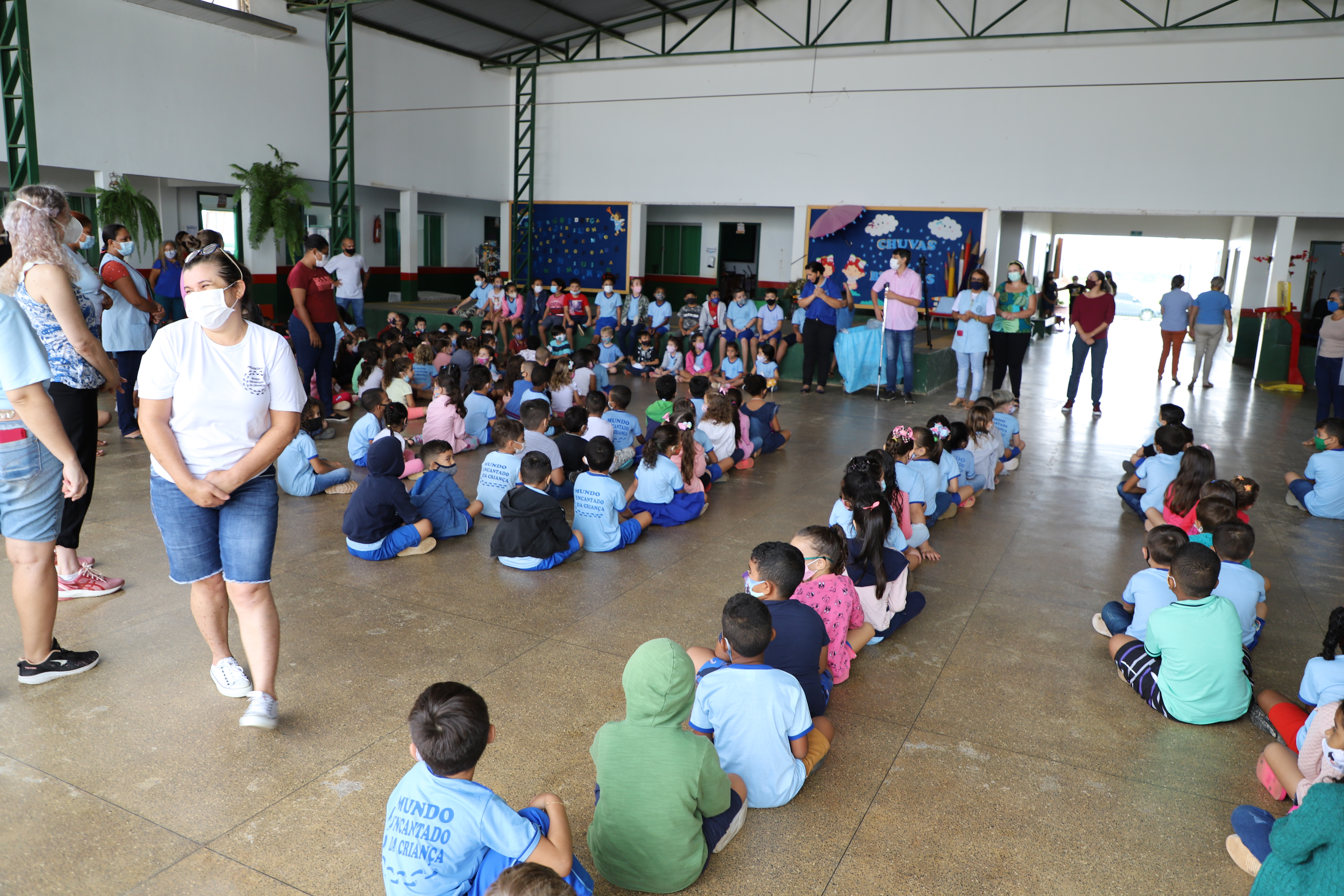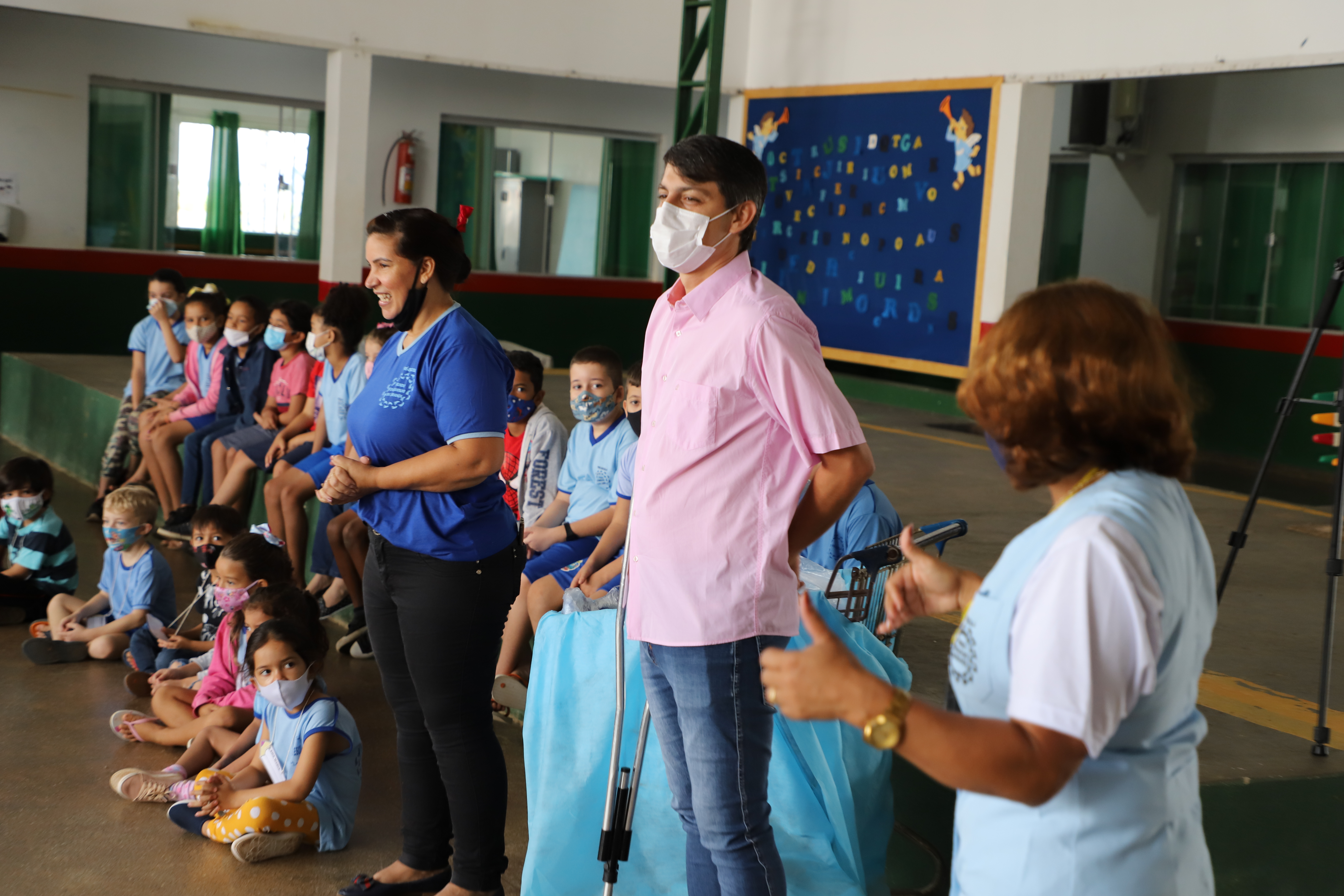 Além da volta às aulas o prefeito Bruno Mena fez a entrega simbólica dos uniformes aos alunos, que vão receber cada, dois uniformes para o ano letivo de 2022