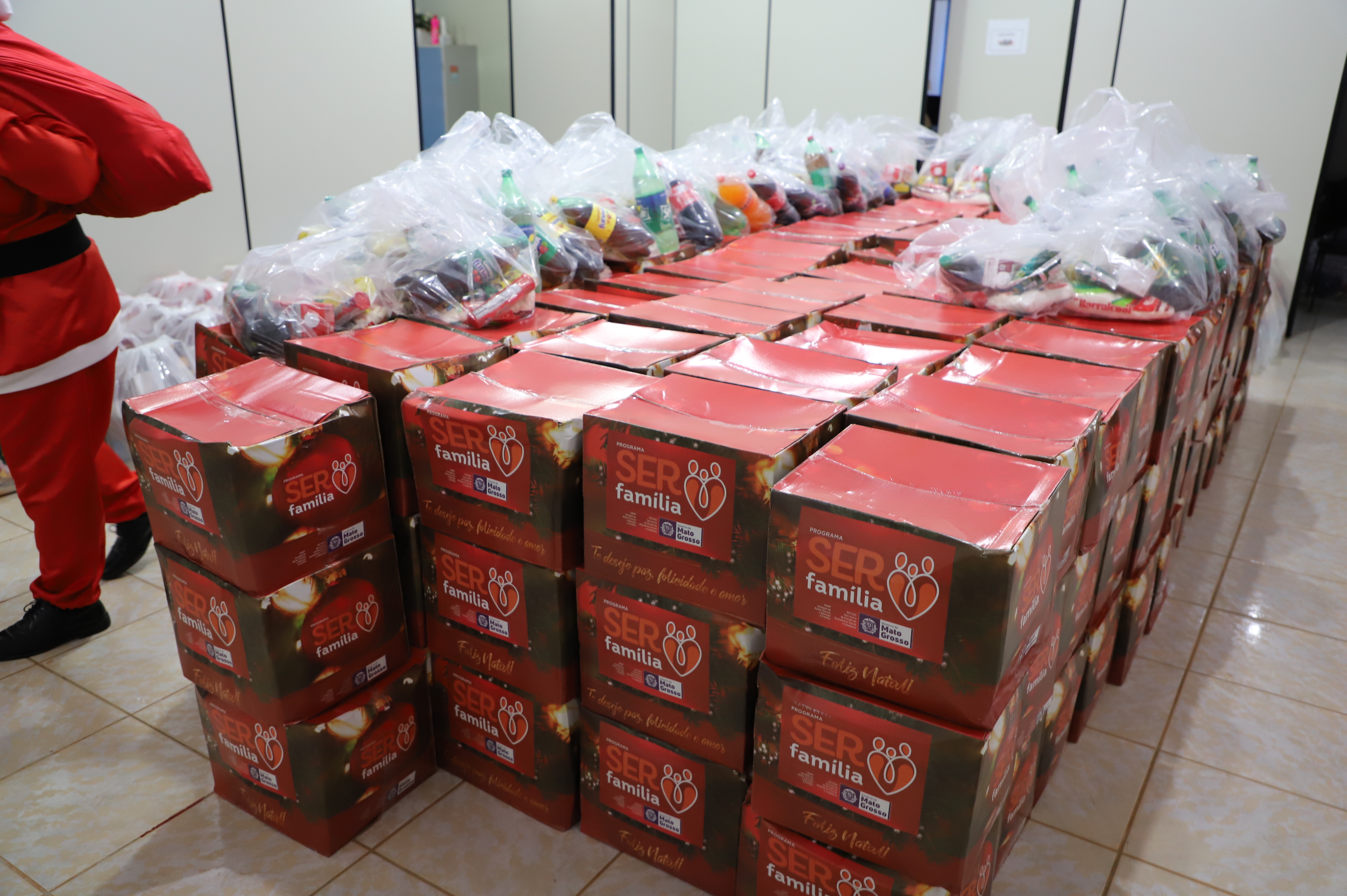 As cestas foram confeccionados a alguns dias e foram montadas com auxílio de várias frentes, sendo elas o apoio de Governo do estado de Mato Grosso, que através da primeira dama Virginia Mendes fez o envio de cestas básicas do programa do governo “Ser Família", outras cestas foram montadas através do trabalho da equipe da Secretaria de Assistência Social, que juntamente com entidades sociais e com o comércio local montaram diversas cestas básicas através o Programa Natal Feliz, instituído pela secretaria.