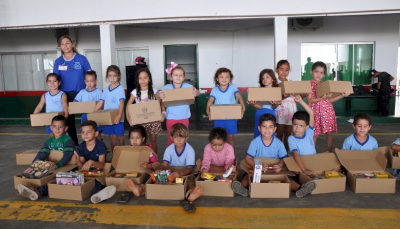 Na oportunidade foram entregues gratuitamente os Kits de Materiais Escolares compostoS por: cadernos, lápis preto, giz de cêra, tesoura, borrachas, apontadores, lápis de cor, material dourado, quebra cabeças, entre outros ítens dentro da faixa de idade-série.