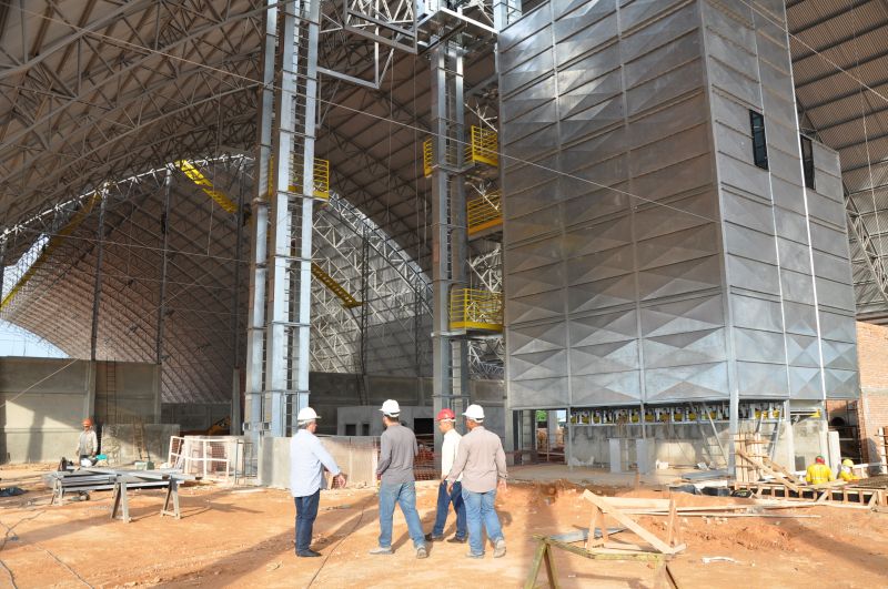 Cerca de 180 operários impõe forte ritmo na edificação do armazém com capacidade para 100.000 toneladas de soja e milho, e outros dois silos, moegas e a casa de máquinas. Os investimentos superam os R$ 40 milhões.