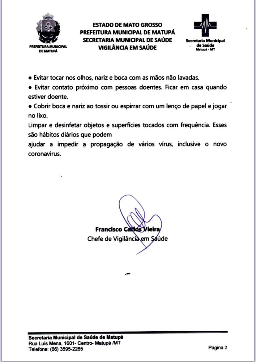 Autor: Prefeitura Municipal de Matupá Data: 08 de Abril de 2020