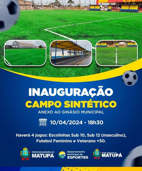 Irá acontecer na noite de hoje, quarta-feira, dia 10, a inauguração do mais novo campo sintético de Matupá, um evento está marcado para as 18:30.