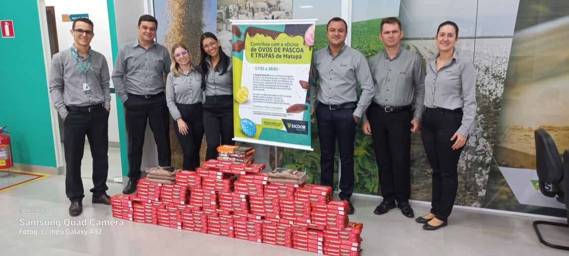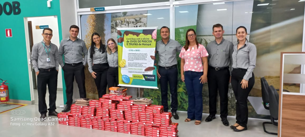 A Cooperativa Sicoob em parceria com a Prefeitura Municipal realizou uma campanha solidária com o intuito de arrecadar chocolates para que sejam destinados a Oficina de Ovos de Páscoa realizada pela Secretaria Municipal de Assistência Social de Matupá.
