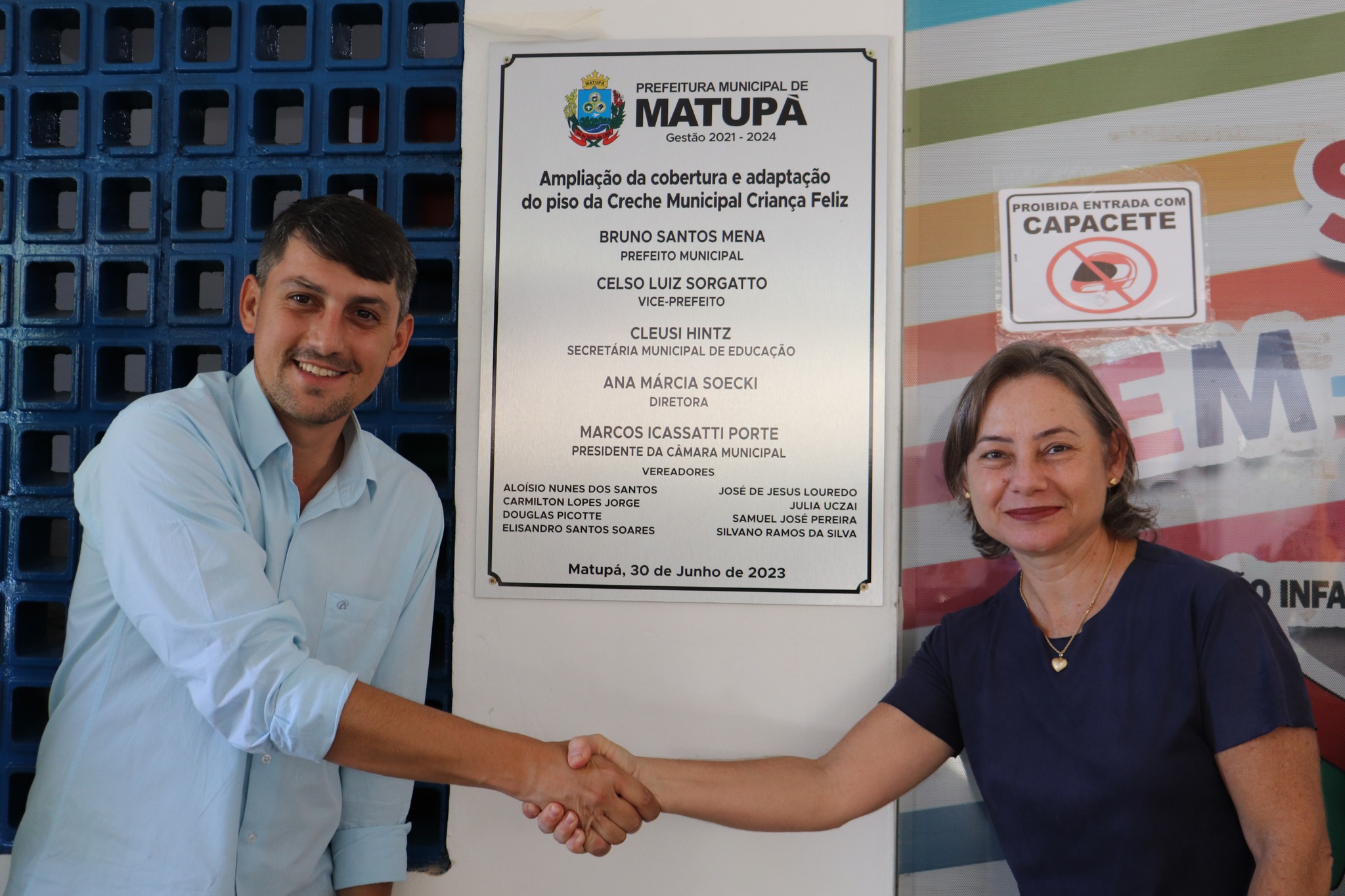Cumprindo a programação de inaugurações de obras nas comemorações dos 35 anos de Matupá foi inaugurada a ampliação da cobertura de ligação de pavilhões e adaptação do piso da Creche Municipal Criança Feliz localizada no Bairro Cidade Alta.