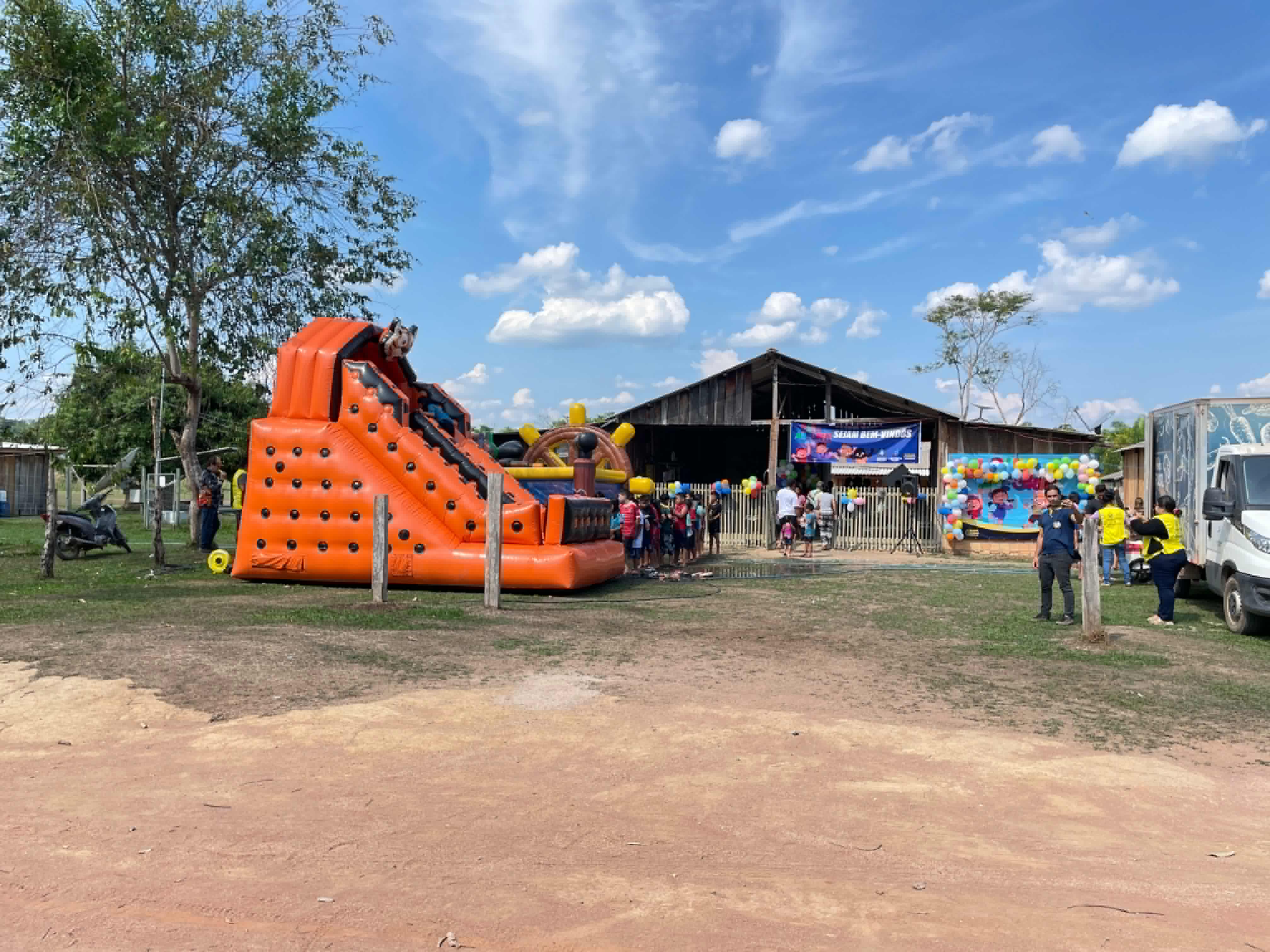 Durante a tarde festiva, as crianças da comunidade tiveram a oportunidade de participar de diversas atividades recreativas e interativas. Brinquedos infláveis foram montados, e os pequenos puderam se divertir também comendo as pipocas, sucos, cachorro-quente e picolés, tudo disponibilizado gratuitamente pelos organizadores e patrocinadores.