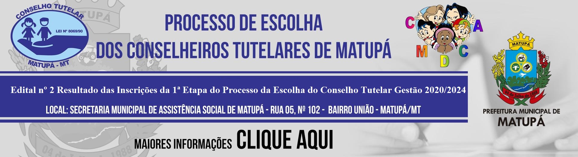 | Edital nº 2 Resultado das Inscrições da 1ª Etapa do Processo da Escolha do Conselho Tutelar Gestão 2020/2024 | Edital nº 2 Resultado das Inscrições da 1ª Etapa do Processo da Escolha do Conselho Tutelar Gestão 2020/2024 |