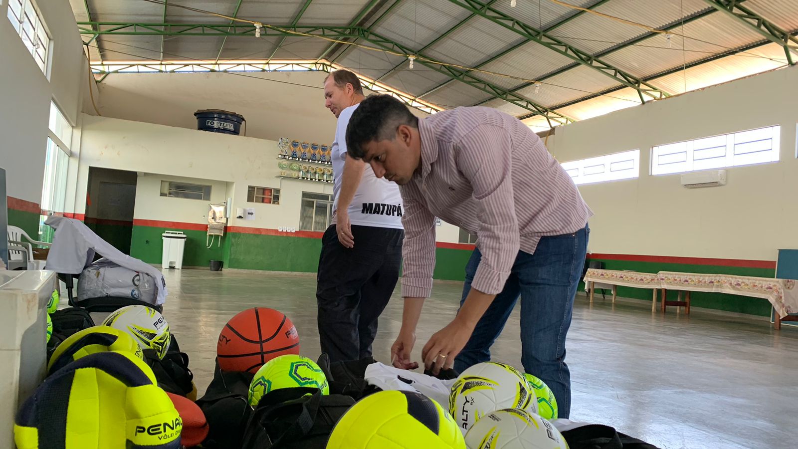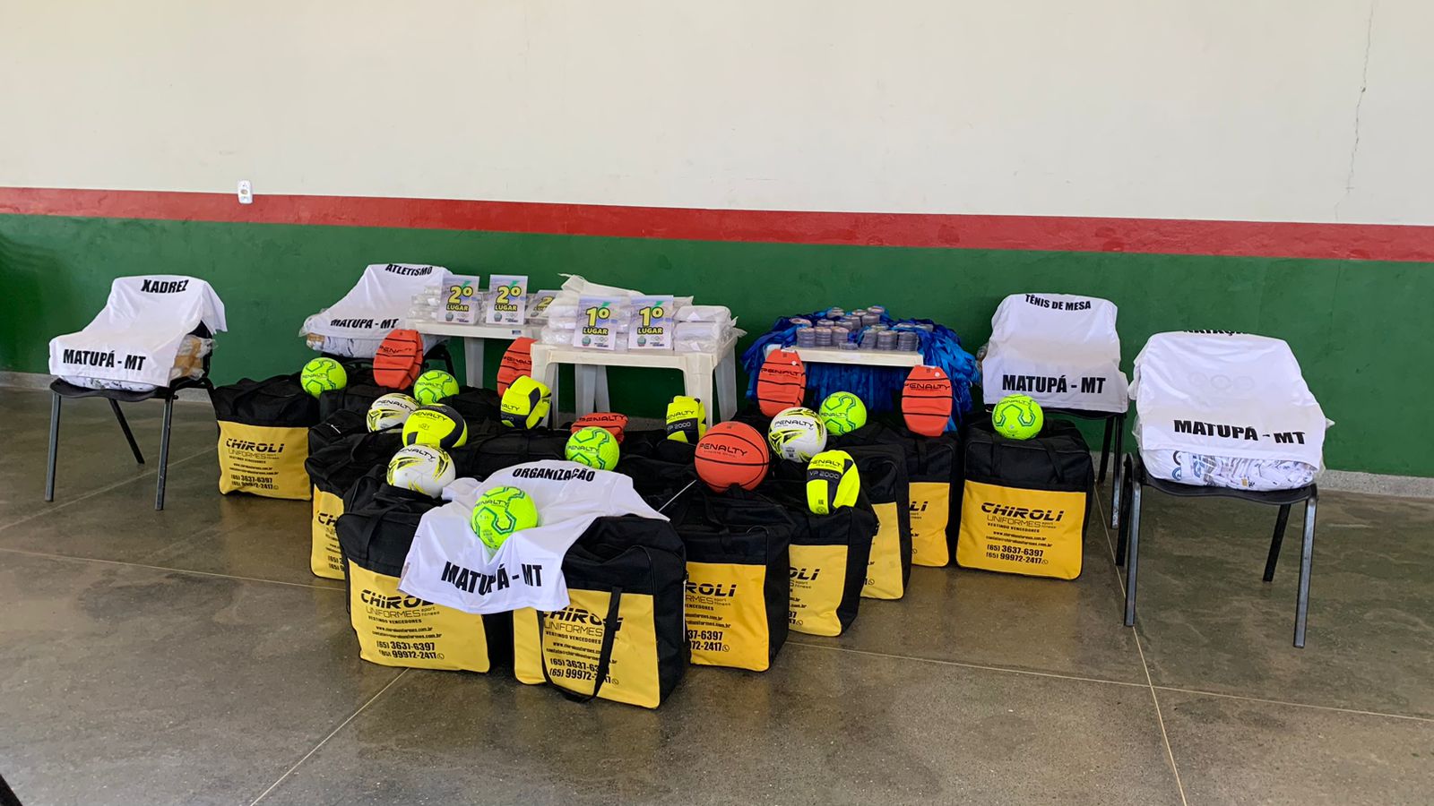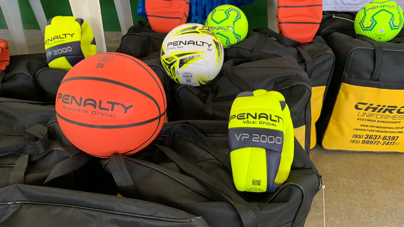 Como forma de incentivo e motivação, o Prefeito Bruno Mena entregou a Secretaria de Esportes kits de materiais esportivos: bolas, uniformes, medalhas e troféus.