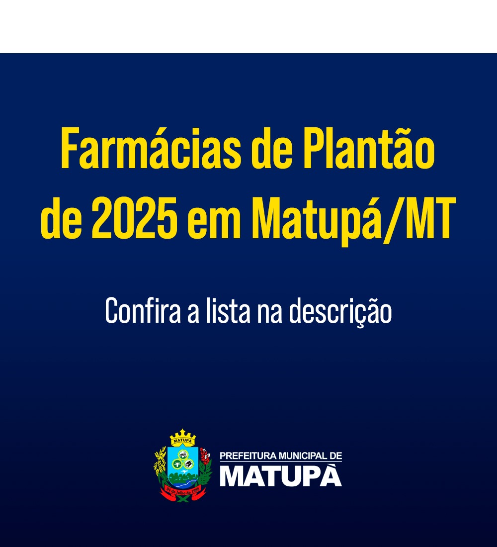 A Prefeitura Municipal de Matupá/MT torna público o Decreto Nº 5247, de 7 de janeiro de 2025, que regulamenta o funcionamento das farmácias em sistema de plantão no município ao longo do ano de 2025.