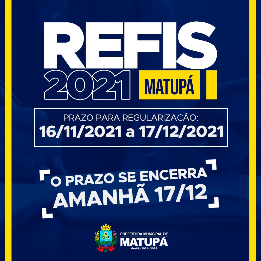 O REFIS Matupá 2021 iniciou em 16 de novembro de 2021 e se estende até a data de amanhã (17/12/2021), o REFIS teve como função atender as demandas dos cidadãos contribuintes que estavam com pendências fiscais com o município.
