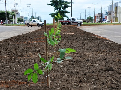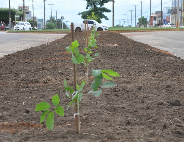 A Secretaria de Obras providenciou o nivelamento de toda extensão do canteiro, enquanto a Secretaria de Agricultura e Meio Ambiente fez a recomposição do solo com terra preta e adubo, e agora aproveitando o período de chuvas desenvolve o plantio de mais de 80 mudas de Ipê Roxo e logo em seguida grama.