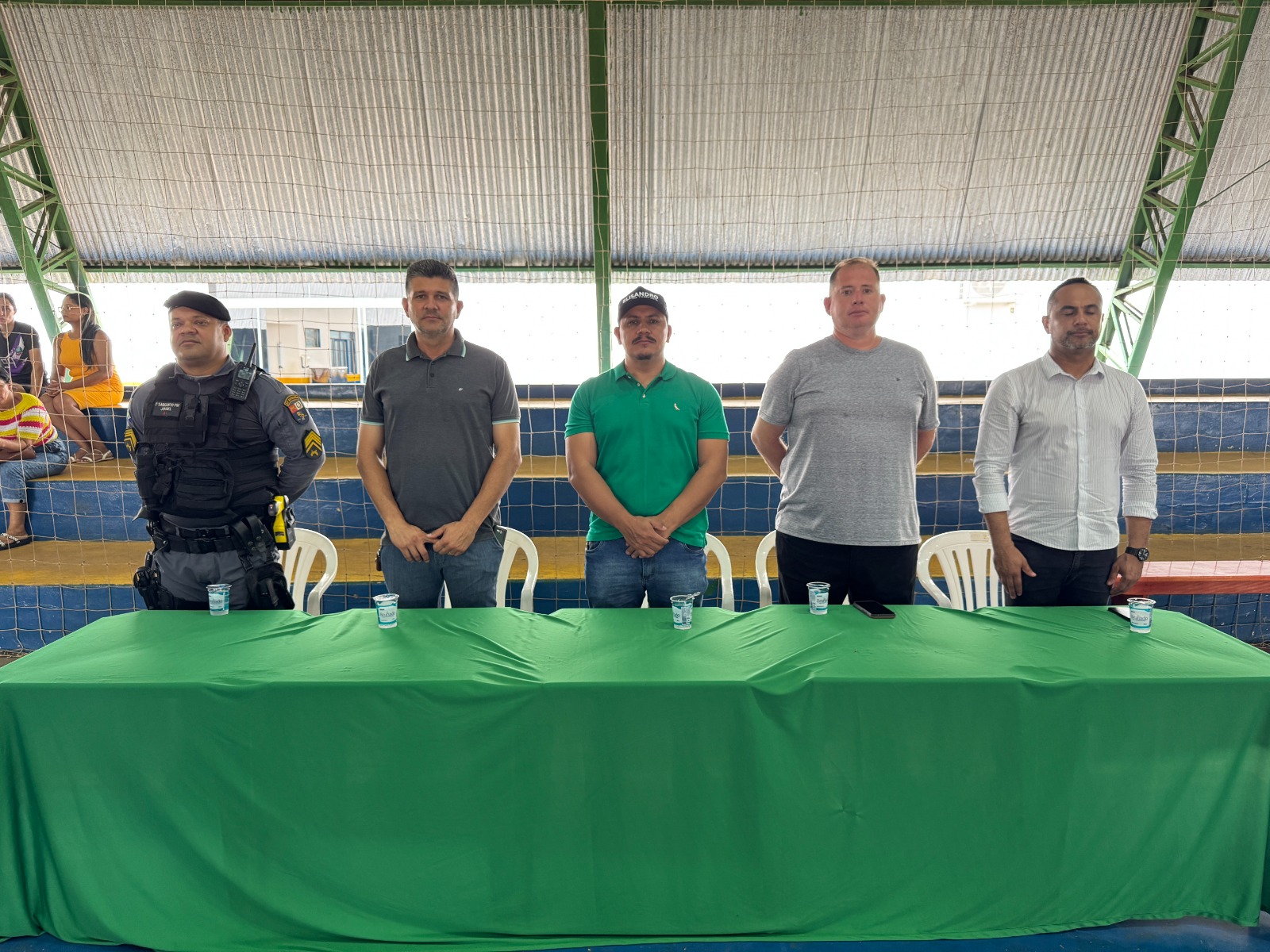 Na manhã desta sexta-feira (10), o Mini ginásio, no bairro Jardim das Flores, foi palco da cerimônia de juramento à bandeira dos jovens dispensados do serviço militar. O evento contou com a presença do 1º Tenente Torres, dos vereadores Elisandro e Beto do Posto, do secretário de Governo Ivo da Silva — que representou o prefeito Bruno Mena — e do secretário de Esportes Franco.