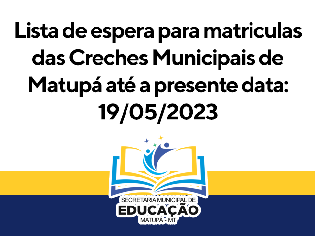 É com satisfação que informamos sobre a disponibilidade da lista de espera para matrículas nas creches municipais de Matupá até a presente data. Essa divulgação é realizada de acordo com a Nota Técnica do GAEPE-MT (Gabinete de Articulação para a Efetividade da Política da Educação em Mato Grosso).