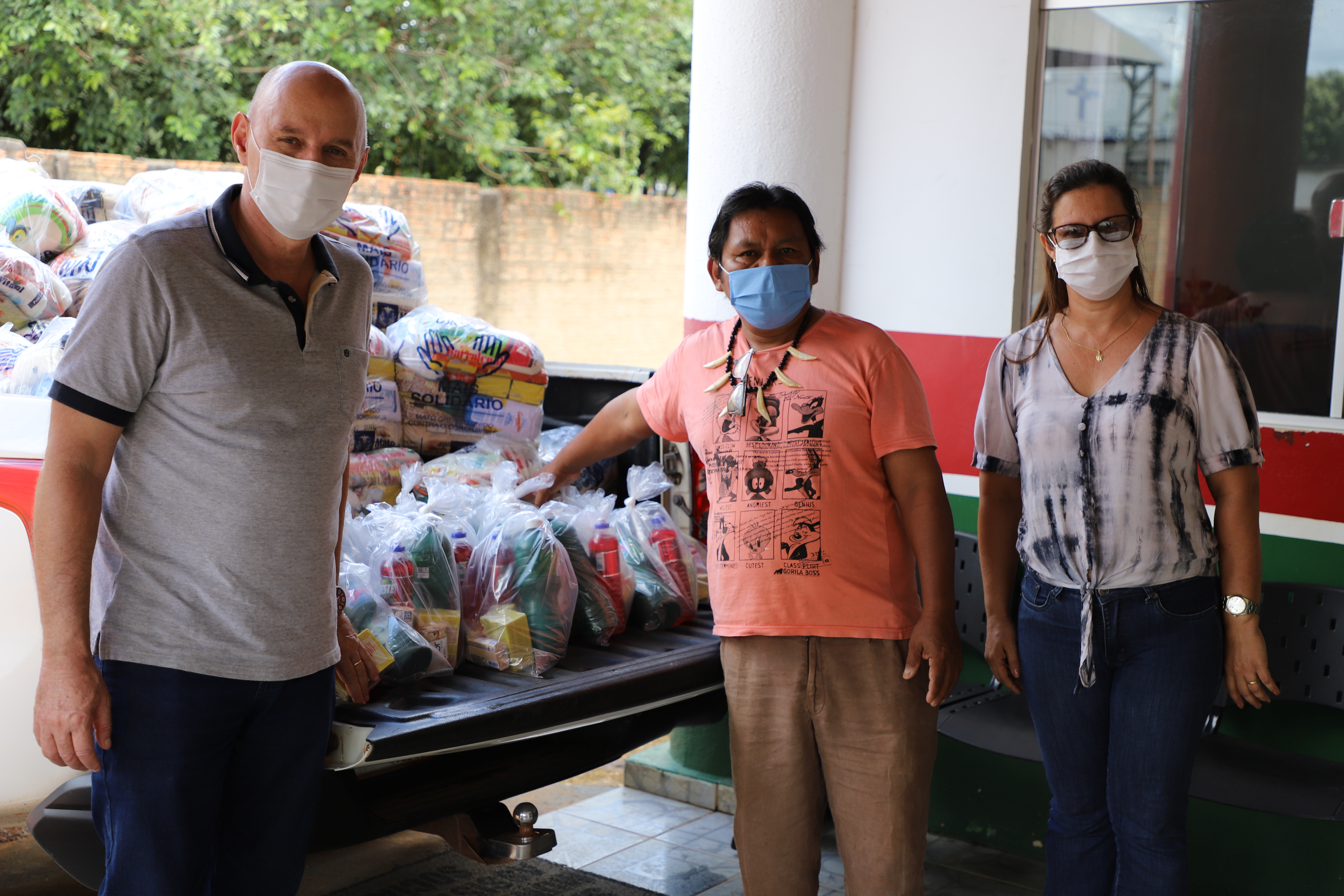 A primeira doação foi realizada para as comunidades indígenas atendidas pelo município, o kit de cesta básica possui mantimentos alimentares e materiais de limpeza. A ação faz parte da campanha MT unido contra o coronavírus.