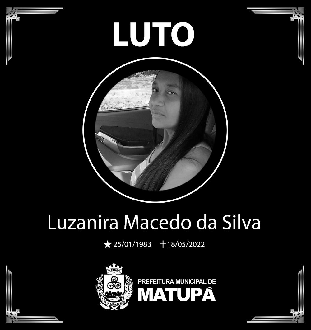 Com muito pesar também comunicamos o falecimento da Senhora Luzanira Macedo da Silva, moradora do nosso vizinho município de Peixoto de Azevedo.