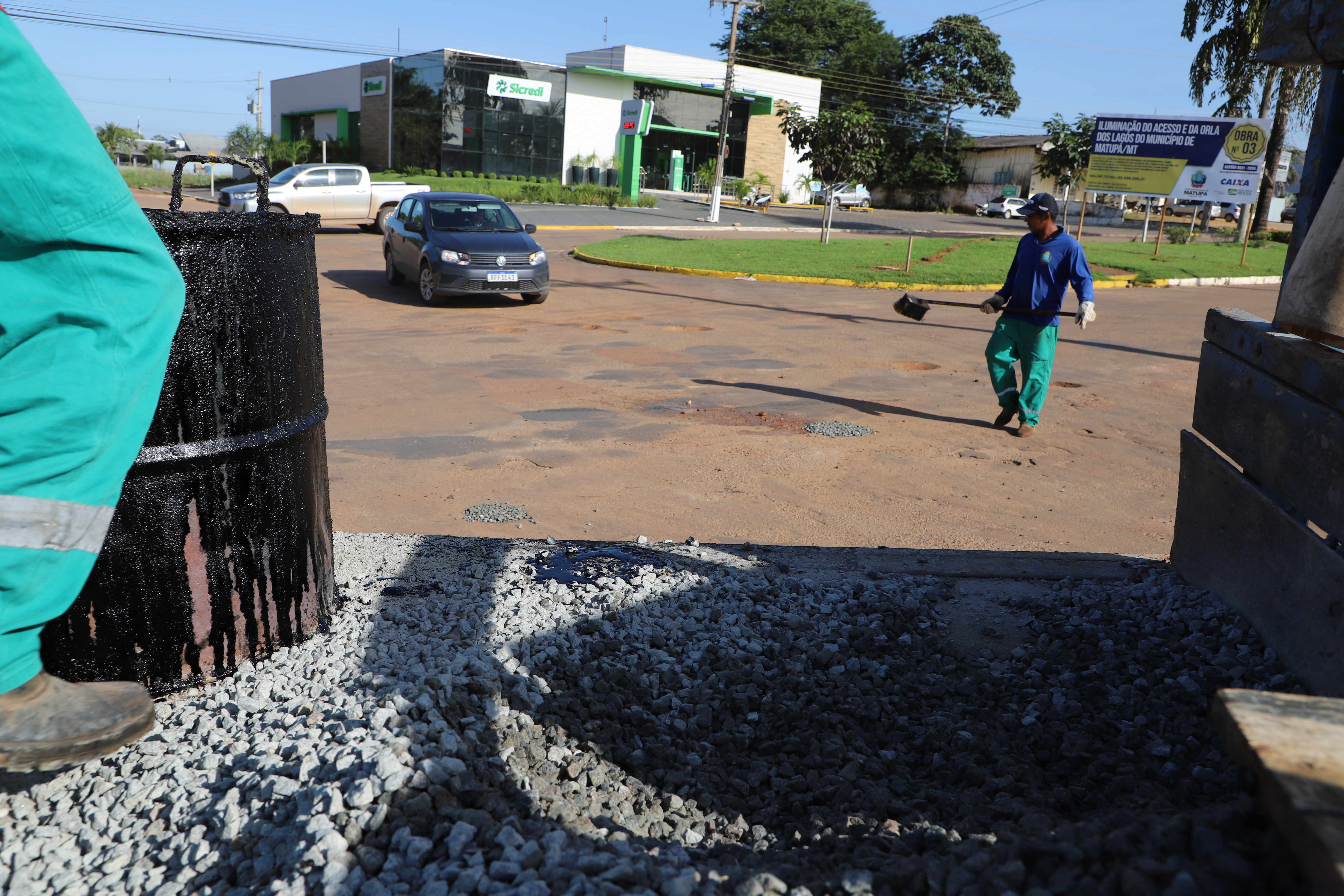 A equipe da operação tapa buraco da Secretaria de Obras está a todo vapor no dia de hoje, visto que o dia amanheceu com um clima propício para a realização dos serviços de manutenção e tapa buraco do município de Matupá.