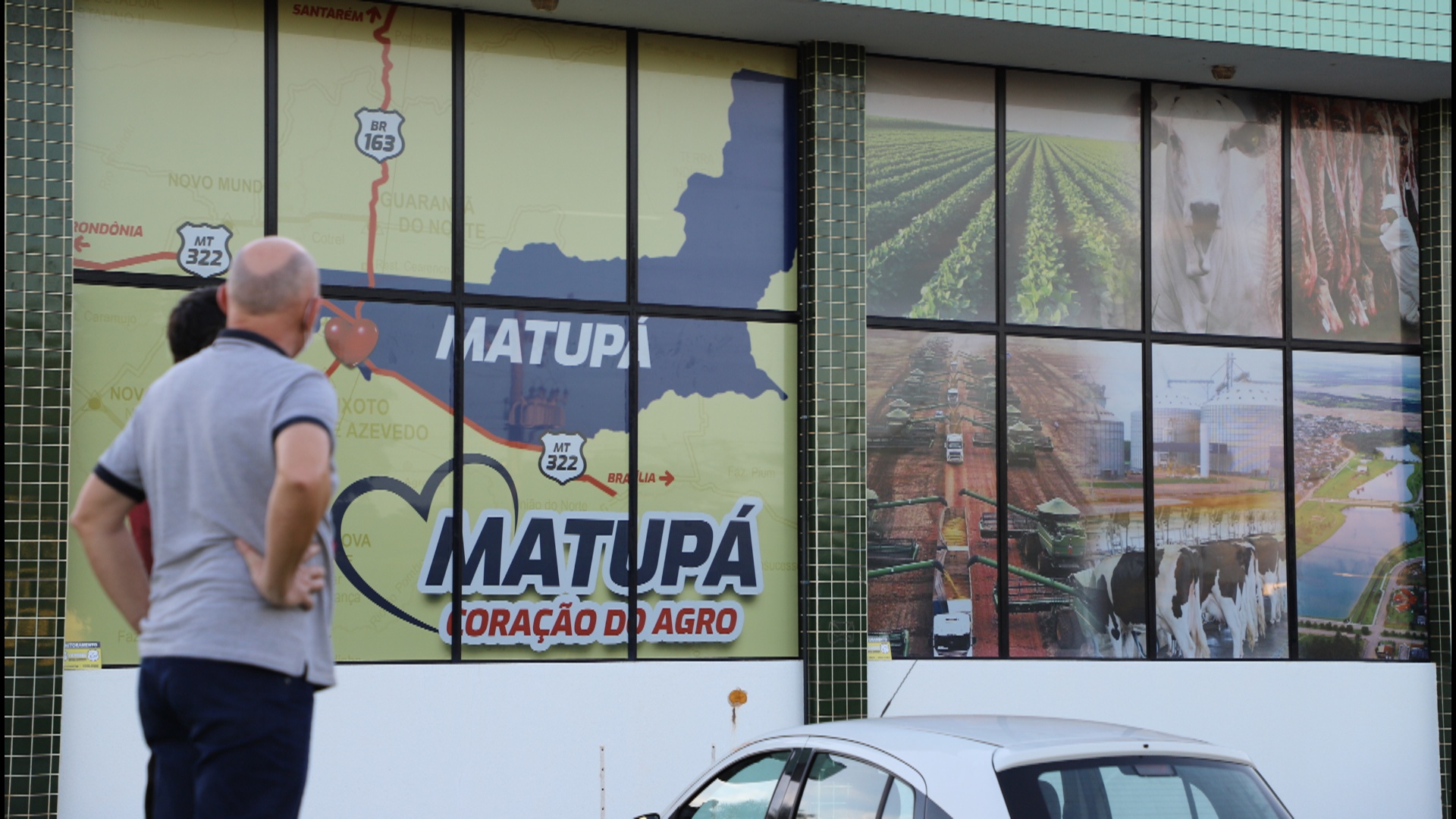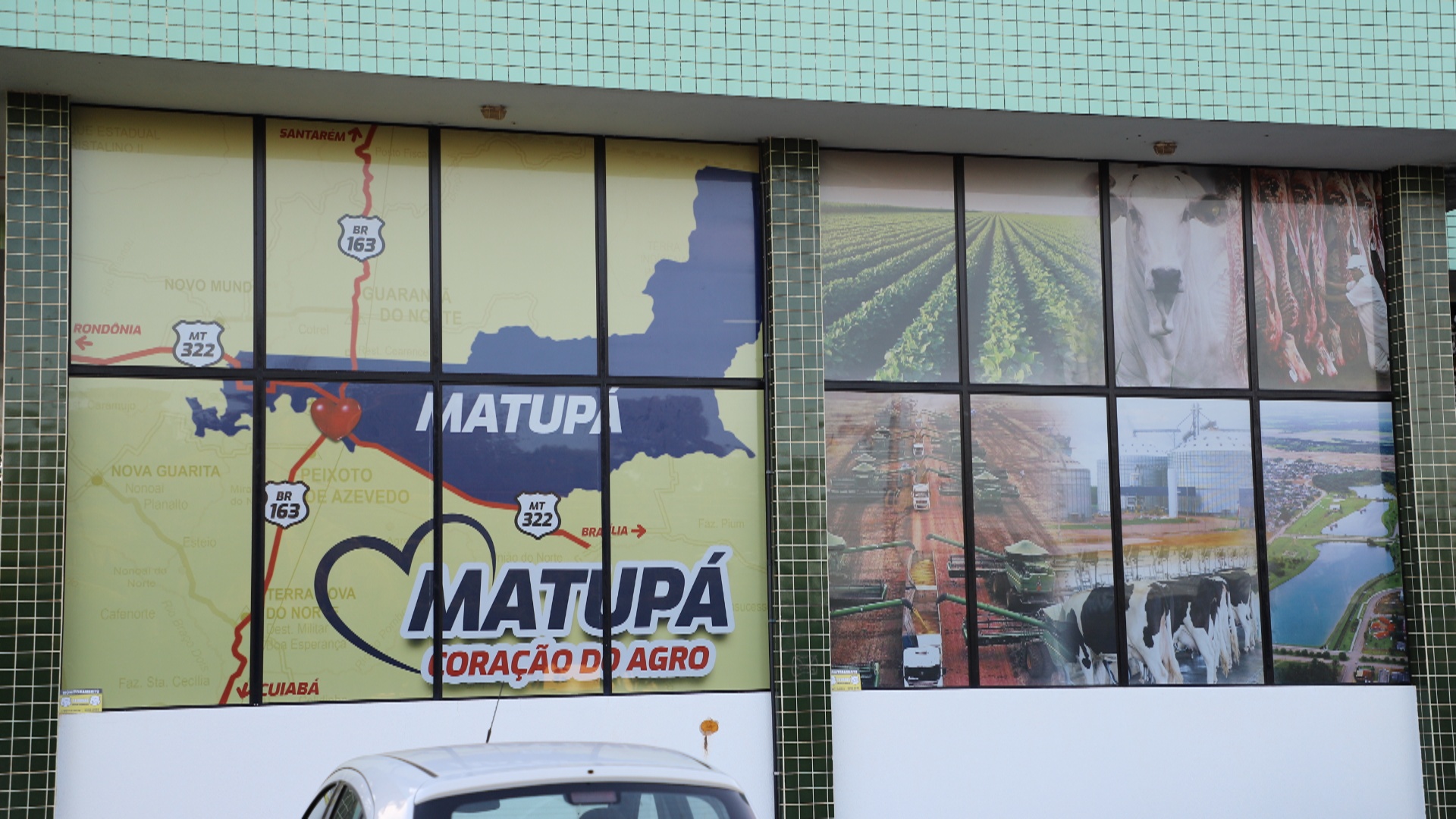 No outro lado da arte, é possível observar uma mapa digital que mostra o entroncamento da BR-163, que liga Cuiabá a Santarém e a MT-322 que liga Brasília a Rondônia, como que Matupá possui esse incrível entroncamento nada mais justo que criar o novo lema para o município, assim no meio da arte está destacado “MATUPÁ CORAÇÃO DO AGRO”.