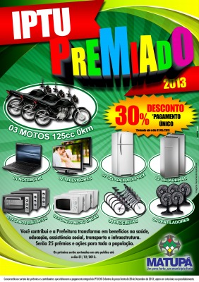 Após o pagamento total seja a vista ou parcelado os contribuintes podem irem até a prefeitura de Matupá para retirarem os cupons para estarem concorrendo aos prêmios.