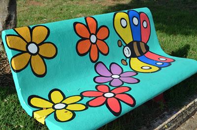 São flores e borboletas que estampam os bancos e que enchem os olhos dos visitantes e frequentadores diante da criatividade e do potencial da juventude Matupaense no contexto de aprendizado sobre a pintura artística urbana.