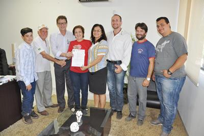 Em seguida em comitiva se deslocaram até a sede da Prefeitura Municipal onde foram recebidos pela Prefeita em Exercício, Marinilde Bernardi Dall Acqua, que oportunamente fez a entrega do Decreto Nº 2471 que homenageia e torna Hóspedes Oficiais do Município o ilustre casal visitante.