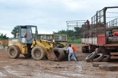 O município de Matupá tem um convênio com a Empresa Reciclanip, entidade voltada exclusivamente para a coleta e destinação de pneus inservíveis. Mais de 10.000 pneus estão armazenados dentro de normas específicas de segurança e higiene. O Coordenador da Vigilância, Francisco Oliveira lembrou que serão necessárias pelo menos quatro viagens de carreta para zerar a estocagem.