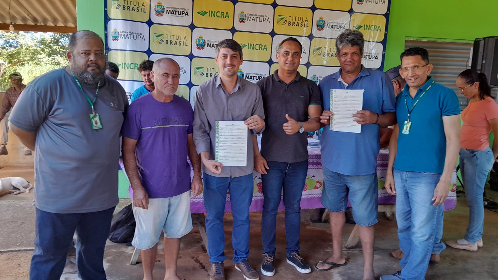 Esteve presente o superintendente em exército do INCRA de Guarantã do Norte e equipe. O secretário de Governo Ivo esteve fazendo a entrega de títulos.