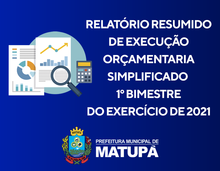 A Prefeitura Municipal de Matupá – MT, COMUNICA que a partir da presente data, o RELATÓRIO RESUMIDO DA EXECUÇÃO ORÇAMENTÁRIO SIMPLIFICADO 1º BIMESTRE , referente ao exercício financeiro de 2021, estão à disposição para exame e apreciação dos interessados, na sede da Prefeitura Municipal de Matupá – MT, nos termos da Legislação pertinente vigente.
