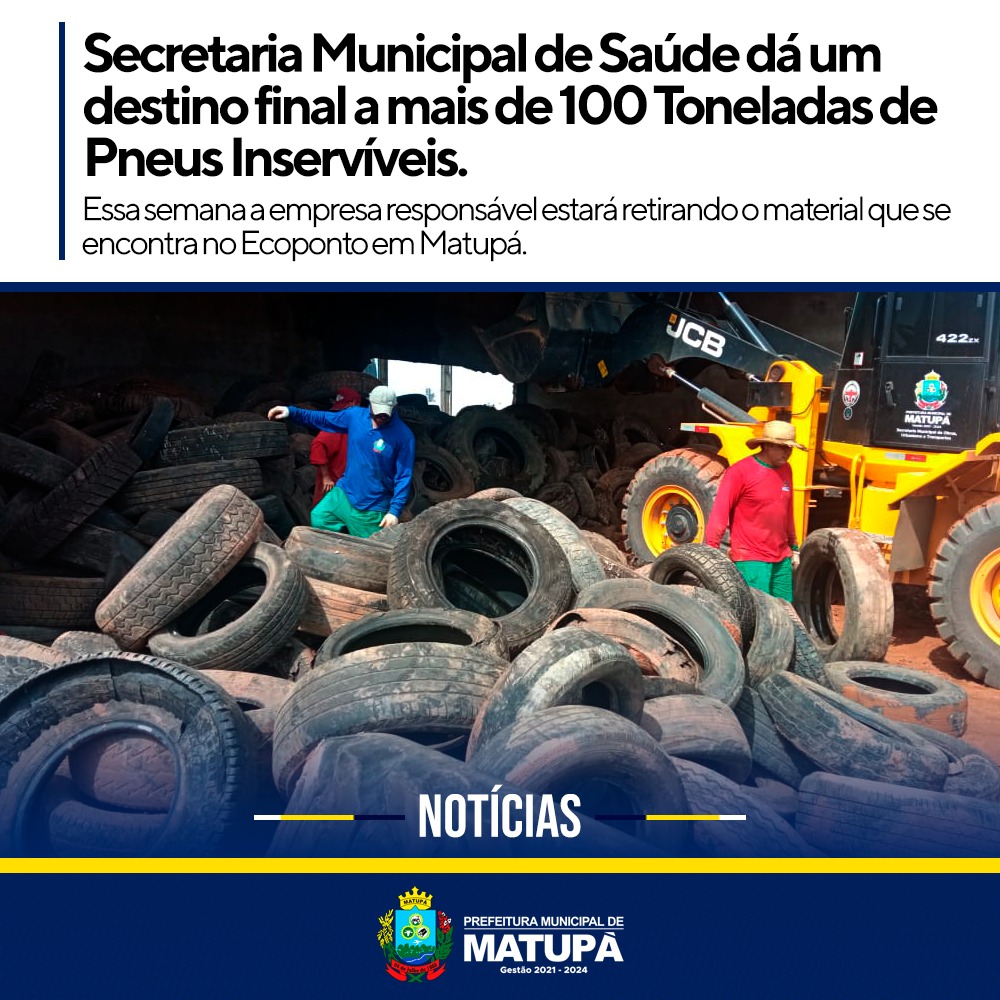 A Secretaria Municipal de Saúde, Obras e Meio Ambiente estão dando destino a mais de 380 toneladas de pneus usados e refugos de borracharias, a ação vem em conjunto com a reciclagem e uma destinação correta aos materiais que possui em suas características uma difícil decomposição caso fossem descartados na natureza ou aterro sanitário.