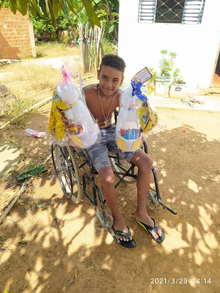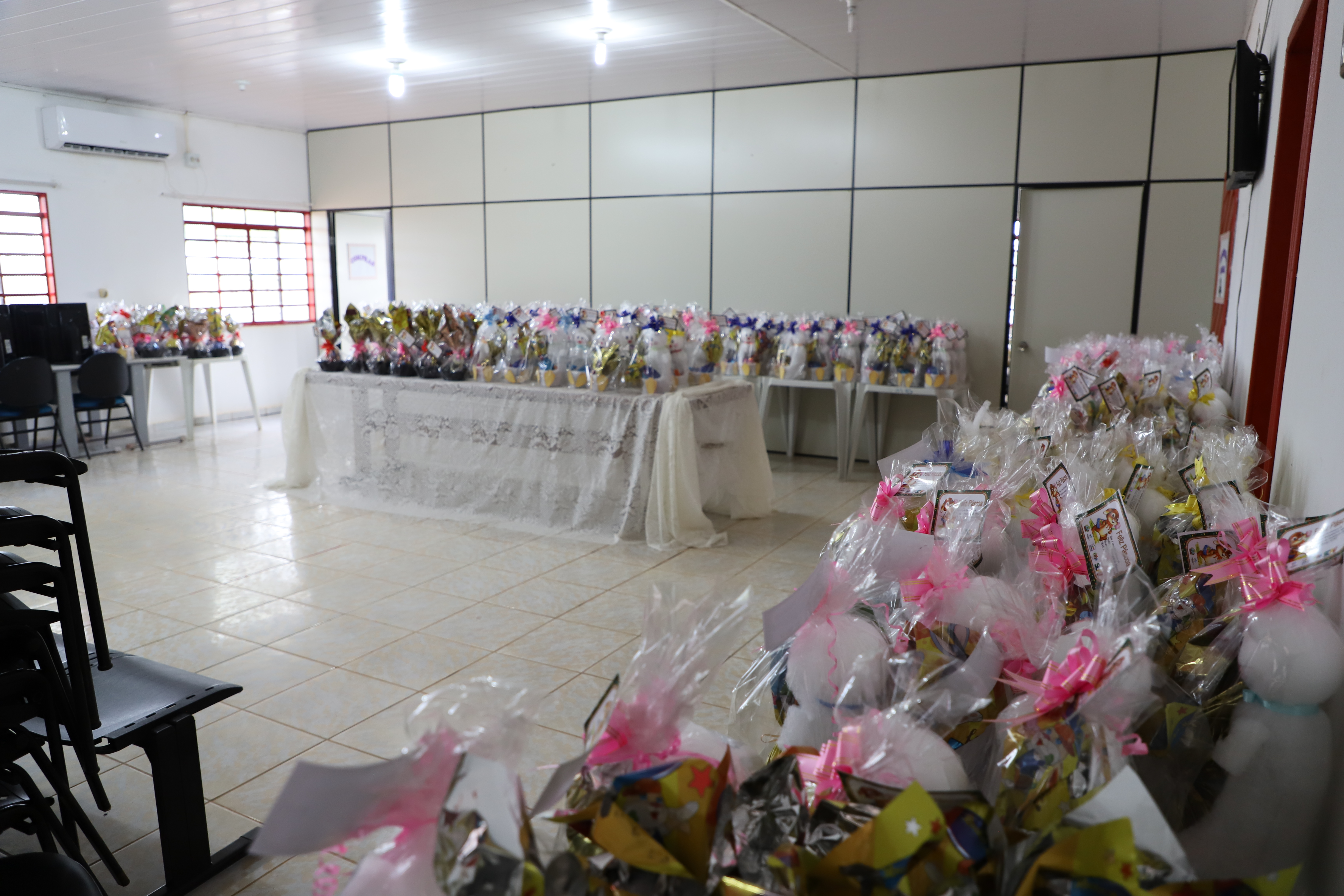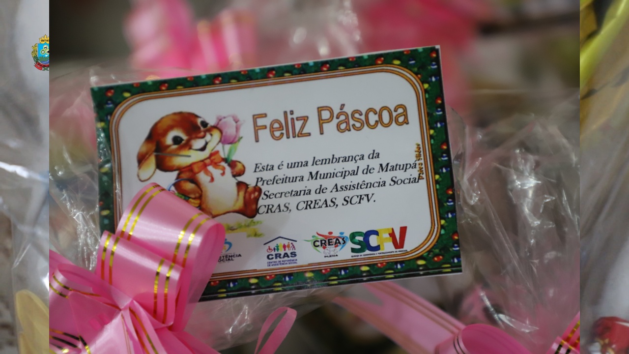 Foram feitos um pouco mais de duzentas lembranças, onde 185 lembrancinhas com a aparência de coelhinhos de páscoa, feitos de garrafa pet e algodão, recheados com chocolates e um delicioso ovo de páscoa trufados que estão sendo entregues paras as crianças do município e do interior, crianças que estão cadastrados na assistência social, outras 44 lembrancinhas esta sendo entregues aos idosos que fazem parte do serviço de convivência, sendo forminhas recheadas com chocolates e um ovo de páscoa.