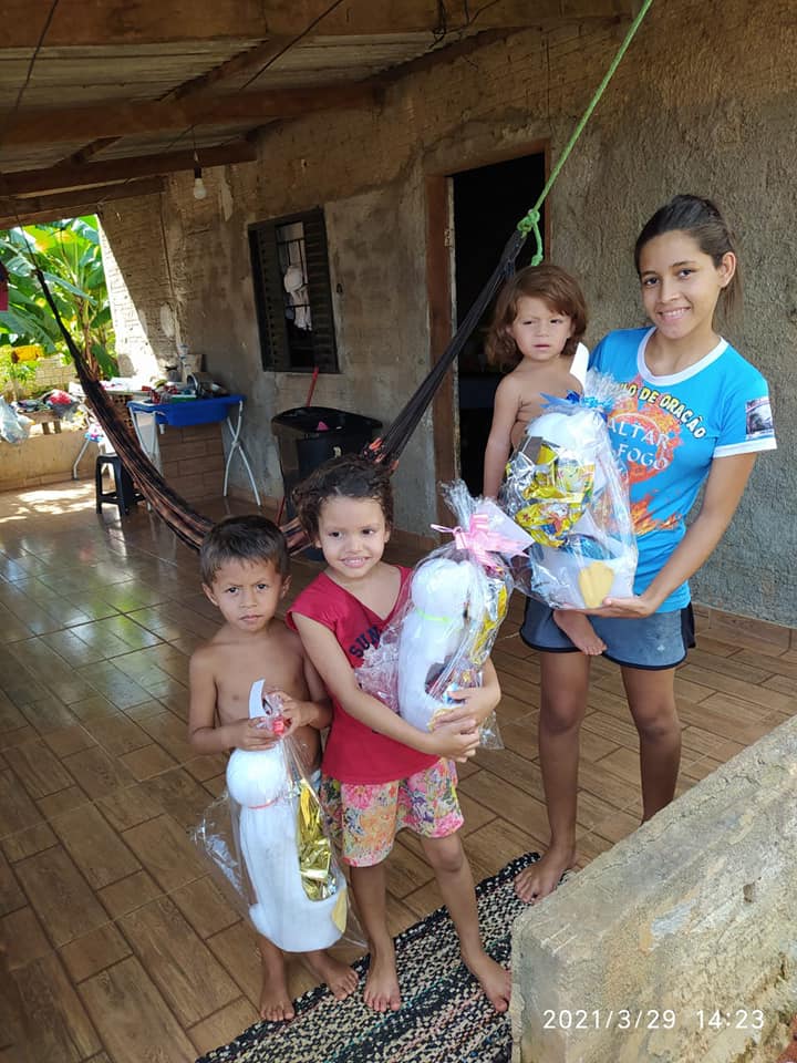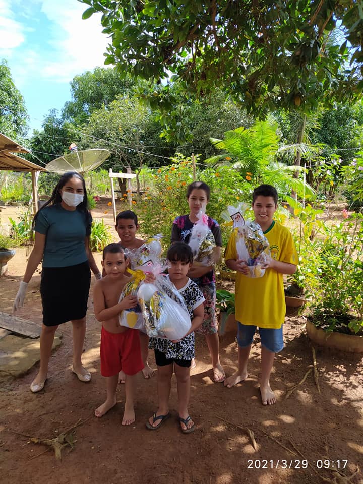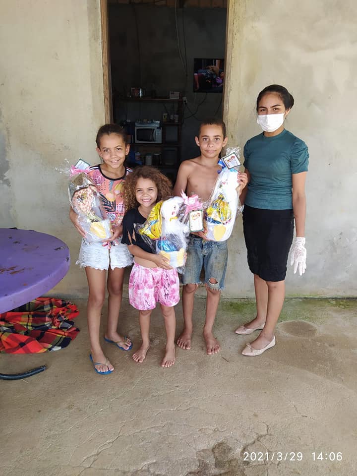 A entrega das lembranças está sendo feita durante toda essa semana que antecede a páscoa, entrega que está sendo respeitados rigorosamente as medidas de segurança sanitárias para o enfrentamento da COVID-19, onde a equipe da Assistência Social utiliza de todos os acessórios e o uso da higienização das mãos com álcool teor 70%.