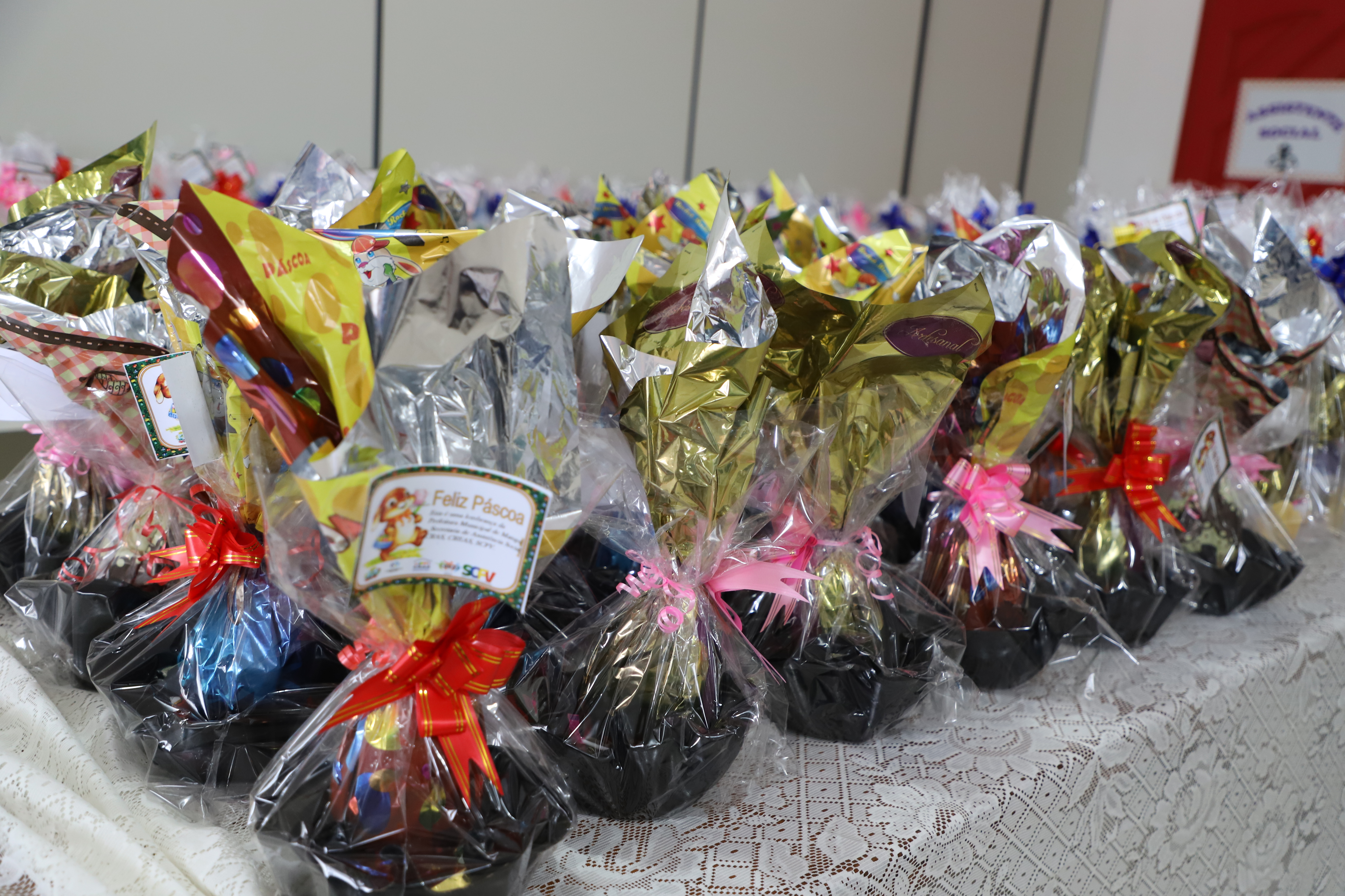 Gesto esse que foi idealizado por toda equipe na produção de forminhas com aparência de coelhinhos de páscoa e a produção de ovos de páscoa trufados produzidos pela equipe e participantes da oficina de ovos de páscoa encerrada na última semana.